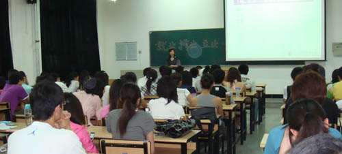 5月20日,光大期货有限公司北京营业部总经理陈园园女士为我校经济学院光大期货班 2006 级、 2007 级同学做主题讲座,讲座围绕着期货班同学关心的“大学生就业、择业、立业”这一话题展开,经济学院张宏武副院长主持了讲座,经济学院金融系主任王常柏教授出席讲座并做总结发言。
